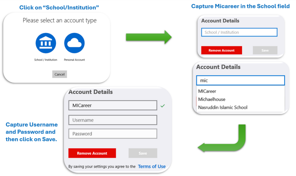 2. Capture/Select MiCareer from the drop-down menu on the “Name of Your School” field